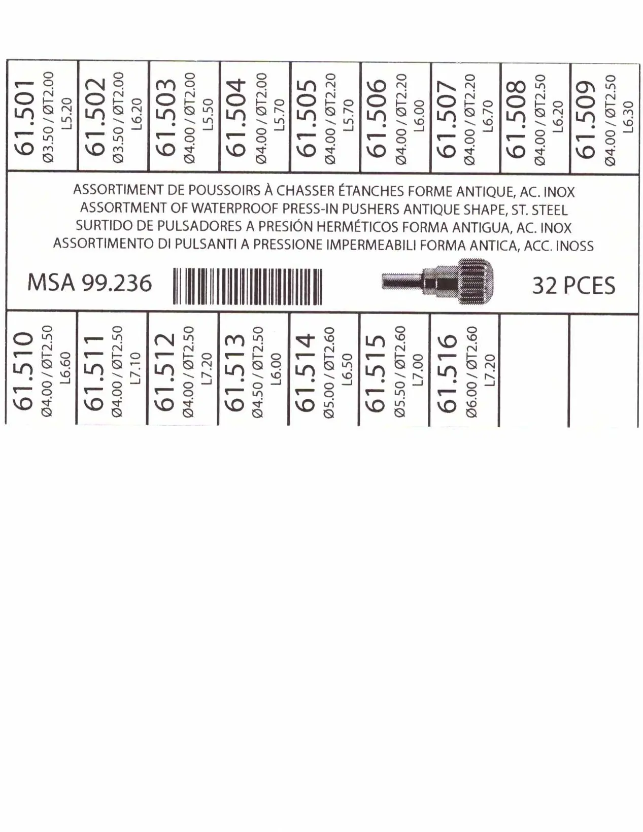 Stainless Friction Pusher Assortment, Antique Style, 36 pieces