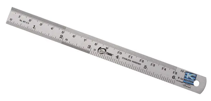 This fine 6″ steel ruler is useful for quick measurements or scribing lines and features a hole in one end for hanging and includes a handy conversion chart on the back – inches to millimeters.
