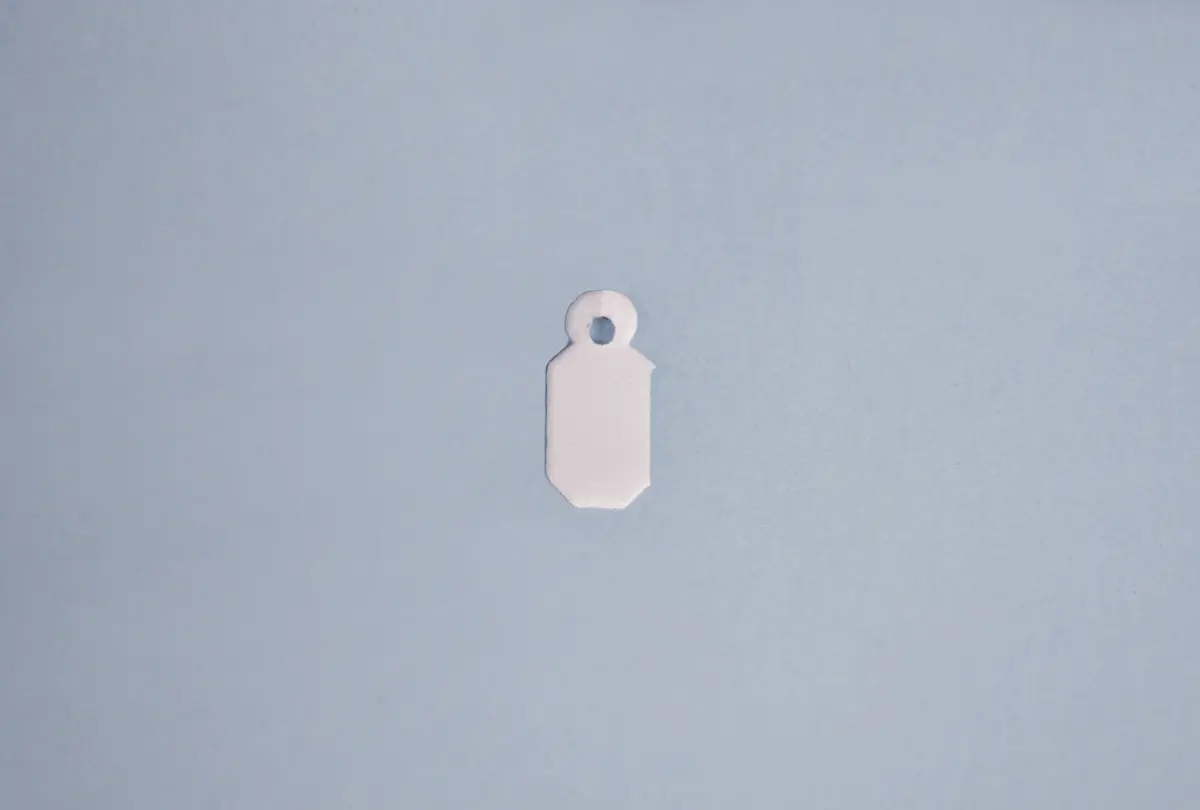 Made of strong white cardboard with red strings, no imprinting available. Sold by box of 1000.