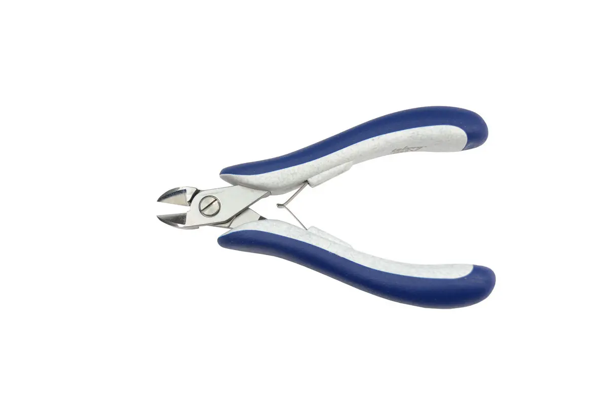Also known as side cutters, they have semi-flush cutting edges for precision wire cutting of soft wires. Cushion grips provide comfort and retains precise alignment. Round jaw, Semi Flush cut.