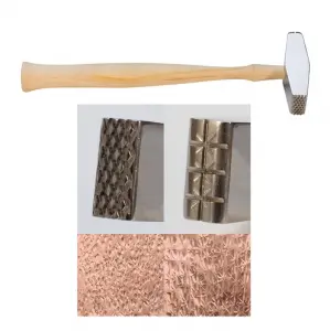 Texturing hammers for non-ferrous metals. Our double-sided hammers enable the user to make attractive patterns to give jewelry and other metal items a special look. Two different patterns with each hammer. Just place sheet metal on a flat metal block or anvil and strike sharply. In no time you will have interesting patterns. Hammers have a Rockwell hardness of 48 and the more the hammer is used the more interesting the patterns become. Let your imagination take over – our hammers will provide you with a simple and easy method to give your finished piece that extra flair.