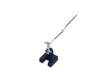 Cross-locking, 6 1/2″ tweezers closes when released. Mounted on heavy-duty horseshoe base.