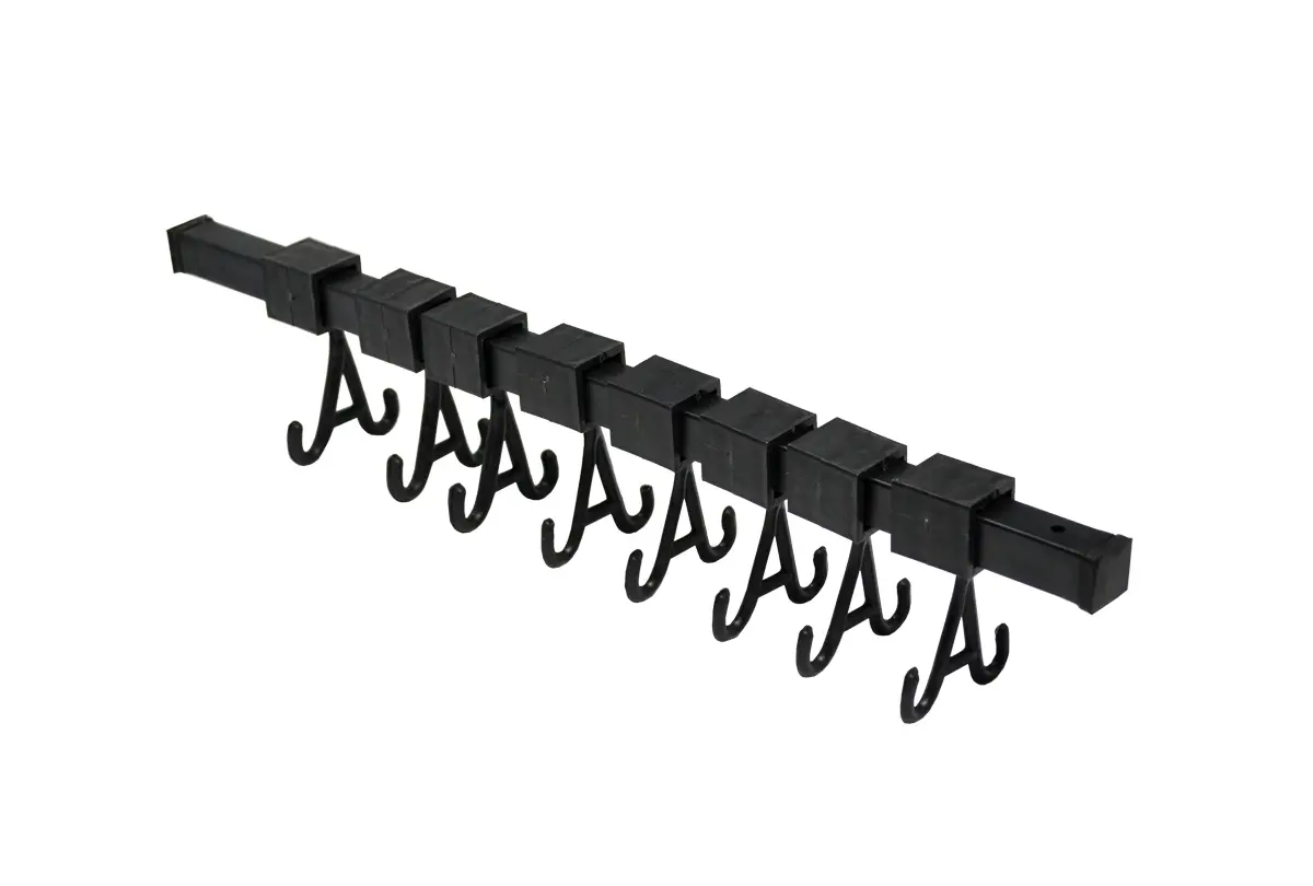 Plastic coated, rust-resistant hook and bar rack increases ultrasonic cleaning efficiency and will not mar objects. 12″ long, with 16 hooks.