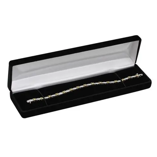 Velvet bracelet box with hinge. White satin lining. Sold by the dozen. Size 8x2x1″ Choose from Black or Green.
