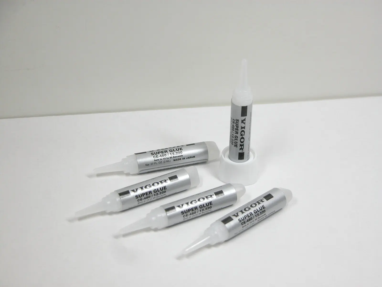Vigor Super Glue sets in 10 to 20 seconds. Perfect for jewelry repair. Exceptional adhesion for metal, most plastic, ceramic and glass. No-drip, precision applicator allows for glue to be dispensed one drop at a time. Pack of 5 – 2 Gram Tubes