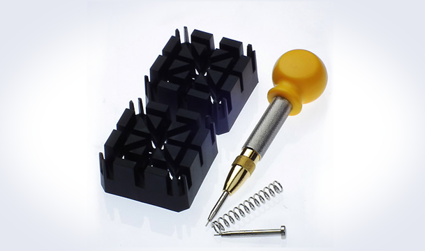 Four piece set that allows you to easily remove pins. Included: two tension springs, two bracelet holders, and a replacement pin.