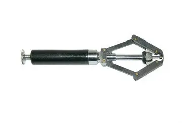 Sturdy, quick acting tool for removing all types of hands from watches and instruments. Hands are removed by pushing downward on the plunger-type handle. Center post acts as a guide and holds hands after removal.