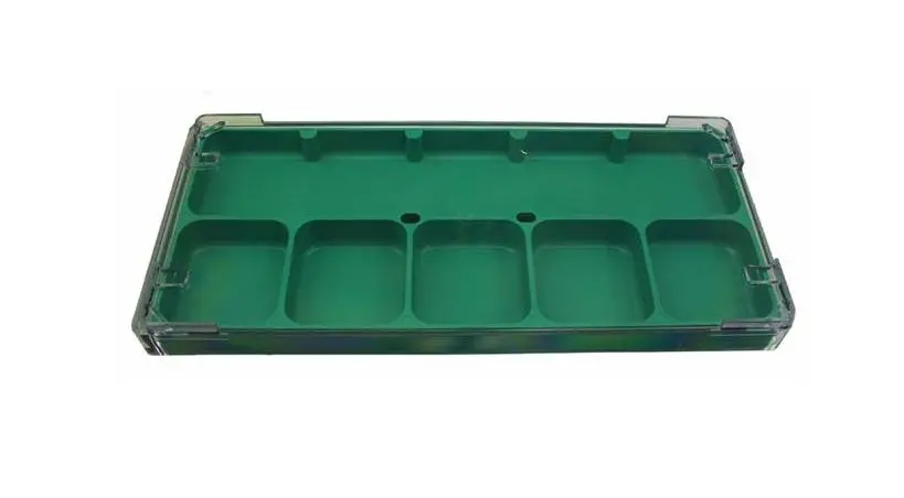 6 compartment watch repair tray with see through lid. Stackable.