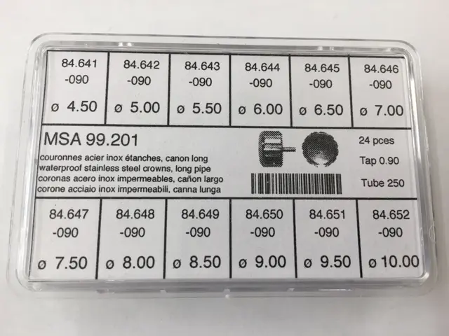 Waterproof Crown Assortment Stainless 4.50mm-10.00mm x 2.50 Tube x 0.90 Tap.