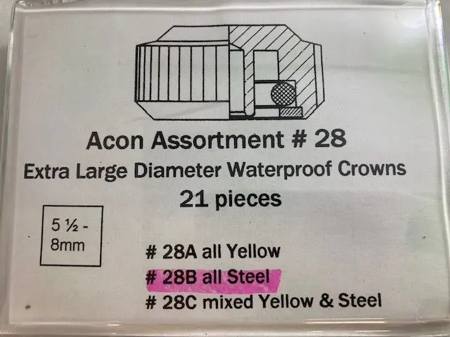 Waterproof Stainless Steel Crown Assortment Large Diameter #28B, 21 pcs