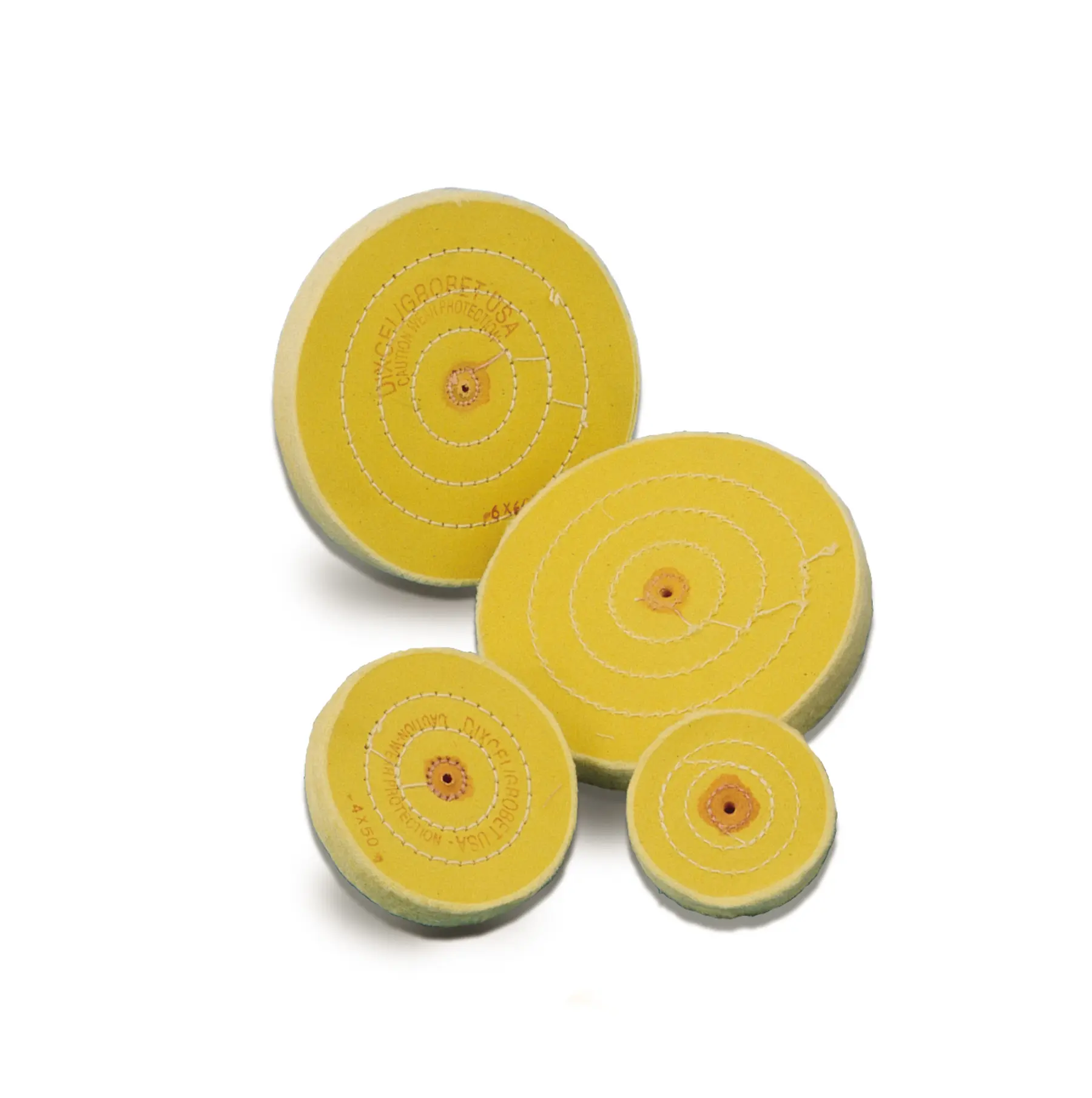 Chemkote muslin buffs with shellac centers are more aggressive. The treated muslin helps remove surface scratches from work. Excellent for use with tripoli and abrasive compounds.