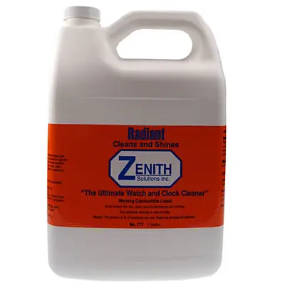 Radiant is in a class of its own because no other cleaner can clean and shine delicate watch and clock parts at the same time. After the cleaning process, metal parts Sparkle. Radiant restores antique movements to their original luster. It is competitively priced so that everyone can take advantage of this superior product. 1 gallon.